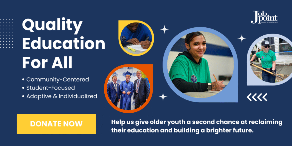 As the needs of this community continue to evolve, Job Point is committed to exploring options that will allow for long-term, sustainable solutions that meet the needs of students. With the changing landscape of federal funding, Job Point has explored several different options to continue the vital programming that YouthBuild provides. By operating as a public charter school, Job Point can ensure that YouthBuild will be able to continue, thanks to the stable support of funding at the state level.
