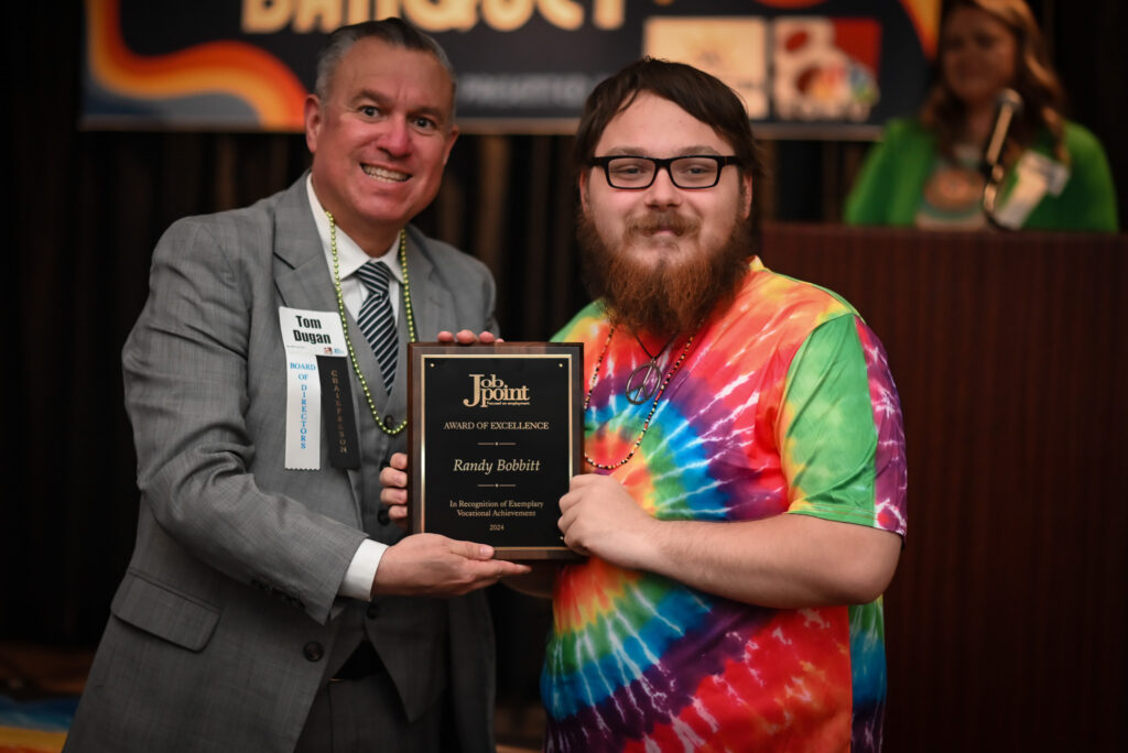On Tuesday, April 1st, Job Point hosted its Annual Awards Banquet at the Courtyard by Marriott. A lively crowd gathered to celebrate the evenings’ honorees as Job Point kicked off their 60th year of serving central Missouri. Supporters also donated nearly $15,000 to help support Job Point’s greatest needs at the end of the evening.