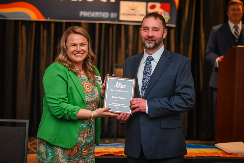 Last year, Travis Kroner, Job Point’s Director of Housing, added a building-wide flooring replacement project on top of everything else he was doing in his program, which meant additional management of students, belongings and schedules. But Travis didn’t miss a beat. Everything went as smoothly as a renovation job could go and everything else kept going like clockwork. Kroner was recognized as the 2024 Employee of the Year.